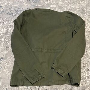 Durable and stylish olive jacket. Features zip closure and pockets. Ideal for casual days
