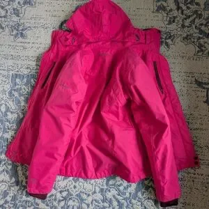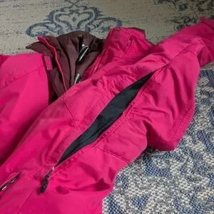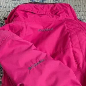 Bright pink ski jacket by Columbia. Durable and stylish. Perfect for winter sports.