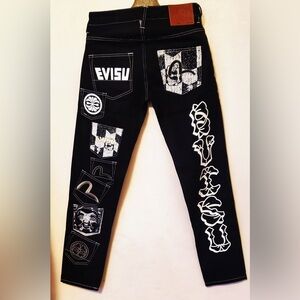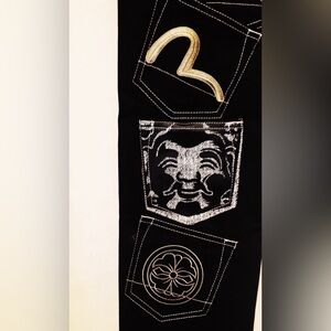 Evisu Black White Graphic Embroidery Multi-Pockets Tapered Denim Jeans NWT w Bag