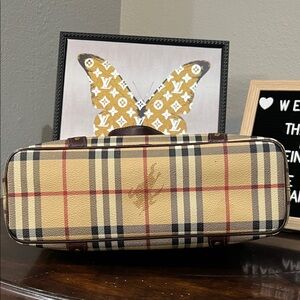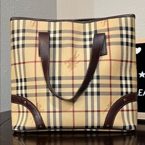 Burberry Vintage Haymarket Check Tote Bag in Coated Canvas and Leather