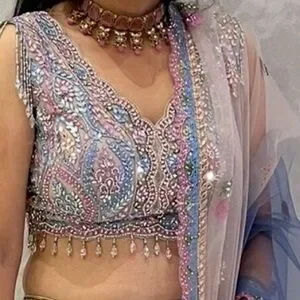 Stunning lehenga choli with intricate embroidery. Features a blend of pink, blue, and gold hues. Perfect for festive occasions.