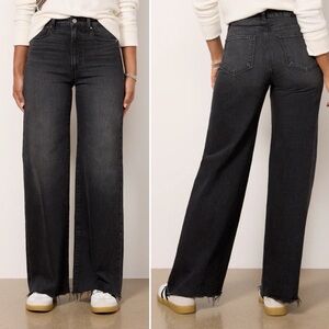 PAIGE Anessa High Rise Wide Leg Jeans in Viper Black Distressed $259 size 27