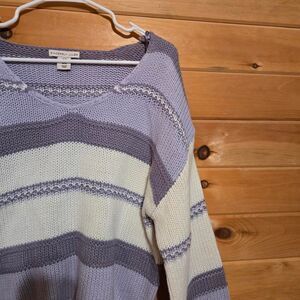Women's Sincerely Jules Purple Lavander Stripe Knit Bell Sleeve Sweater Medium
