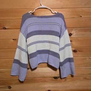 Perfect lavander knit top!! Gorgeous stripe pattern. Loose fit with flare sleeves