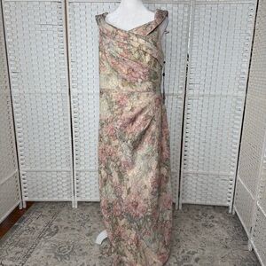 Adrianna Papell Women's Off Shoulder Matelasse Gown,Size 14. Rose Multi color.