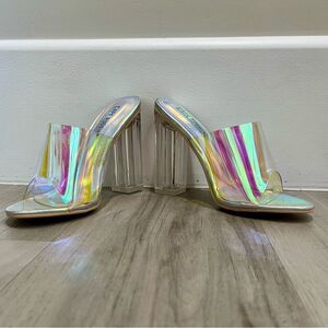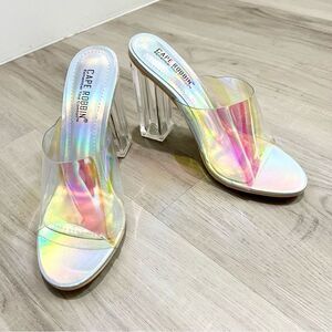 NWT Cape Robbin FUSION TRANSPARENT CLEAR Holographic CHUNKY BLOCK HEELS sz 7