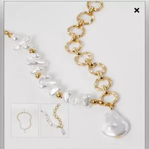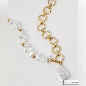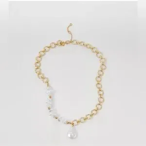 Chic necklace with gold links and white pearls. Perfect for elegance.