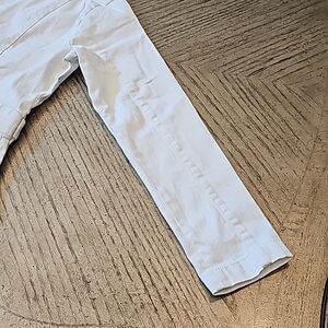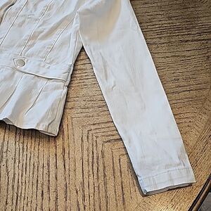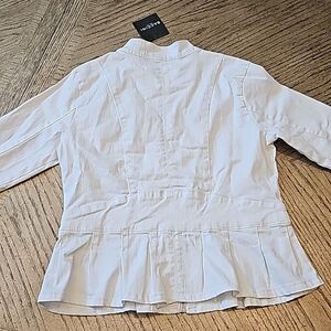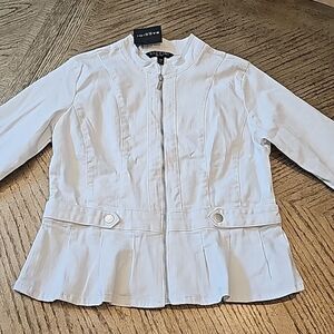 White denim peplum zip up jacket PM NWT Baccini