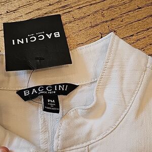 White denim blazer peplum zip up jacket size petite M NWT Baccini, beautiful fit!