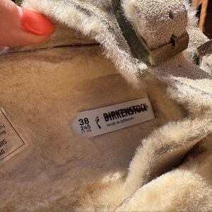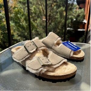 New Birkenstock Arizona Shearling Sandals in Taupe Suede 38