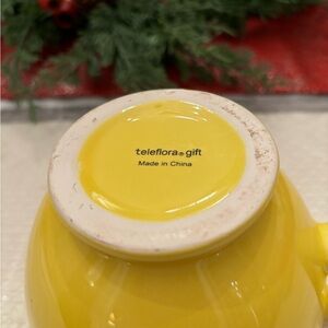 Brighten your day with this cheerful yellow smiley face mug. Perfect for coffee or tea lovers.