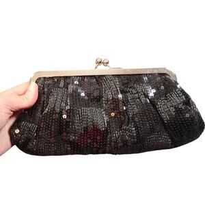 NWT Satin & Sequin Clutch/Shoulder Bag, Black, Frame Design