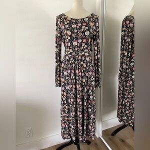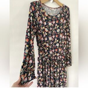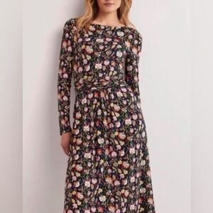 Boden Amelie Floral Long Sleeve Midi Dress, Empire Waist Navy