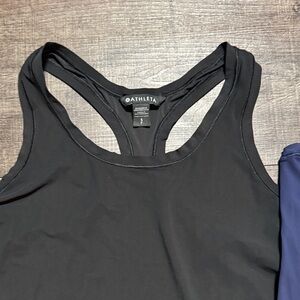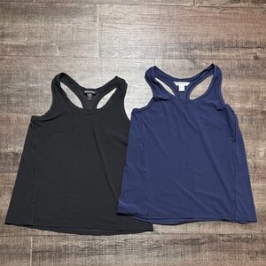 Sleek racerback design. Ideal for workouts or casual outings. Available in black and navy. Excellent condition! Like New