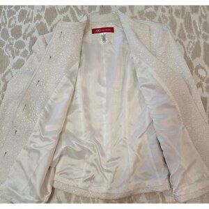 Anne Klein Off White Textured Jacket Mandarin Collar & Pockets Women Size 4