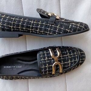 NWOT Kenneth Cole Black Plaid and Gold Women's Loafers_10