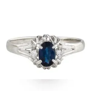 Platinum Sapphire & Diamond Cocktail Ring Size 5 Total Carat Weight 0.38