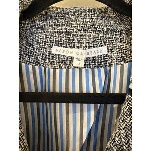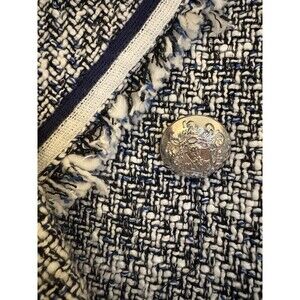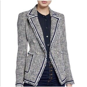 Veronica Beard Theron Tweed Fringe Navy White Frayed Trim Career Blazer Size 12