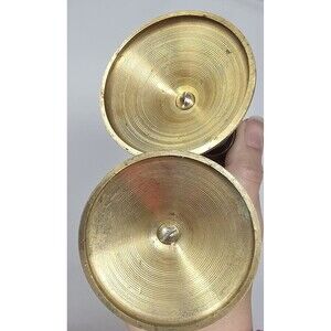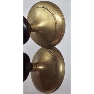 Vintage Pair of MCM Teak Wood & Brass Candle Stick Holders Tapered 3.5"