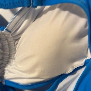 Stylish blue one-piece swimsuit with ruched front and cutout detail. Perfect for beach days. Hi cut. PTP 13” strap to hip 21”