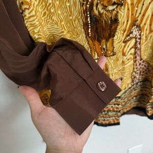NWT Diane Gilman Sequin Silk Safari Print Button Up Blouse Funky African