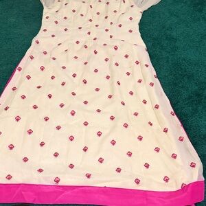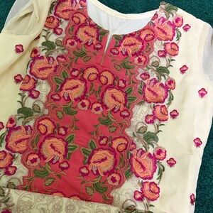 This elegant women's kurta features a stunning floral design in pink and cream. Perfect for formal occasions, it combines style with sophistication.