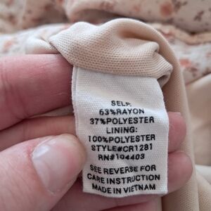 Details: Tan Cream like Color, Floral Pattern, Smocked top, Stretchy, Puff Sleeve, Short Sleeve, Lined, Square Neck, Fit and Flare