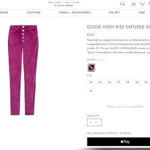 Alice + Olivia Good High Rise Velvet Purple Skinny Slim Jeans Pant