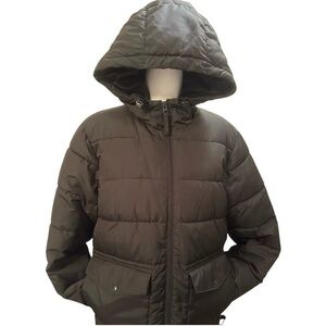 OLD NAVY Black Puffer Jacket. Attached Hood Elastic Waist Full Zip Size XS