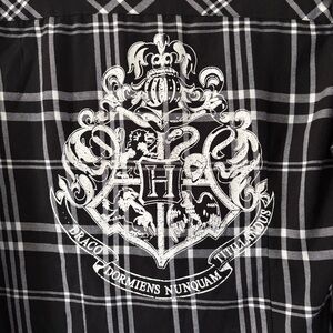 Hot Topic Harry Potter Hogwarts Plaid Woven Button-Up Size Large