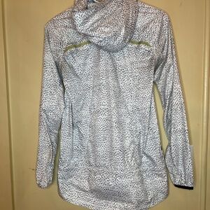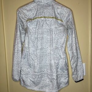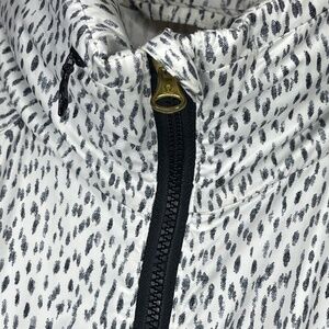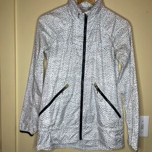 Stylish white and black patterned jacket with zip pockets. Perfect for casual wear.