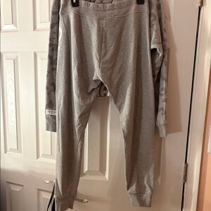 Very excellent condition cozy gray lounge set with subtle animal print. Features bold Calvin Klein logo. Hoodie is a size L and grey matching sweats are a size S.