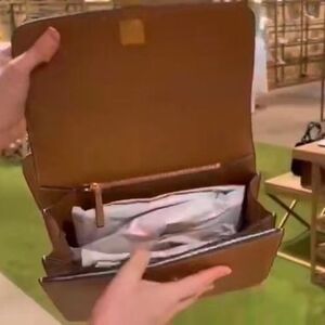 Tory Burch Eleanor Large Tan and Cream Shoulder Bag with Gold Accent