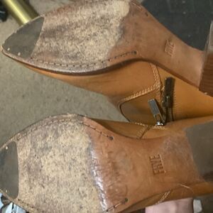 EUC Frye Womens Jennifer Cognac Leather Pointed Toe Zip Up Cute Ankle Bootie