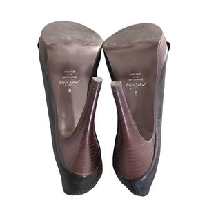 Heels measure 4.75" with a .75" brown platform at ball of foot area.
