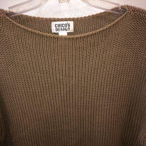 Chicos Design Womens XL 3 Green Knit 3/4 Sleeve Boat Neck Sweater Top Shirt
