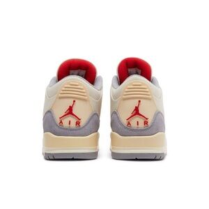 Sleek Jordan sneakers in cream and gray. Features red accents for a bold touch. Ideal for everyday wear.