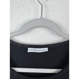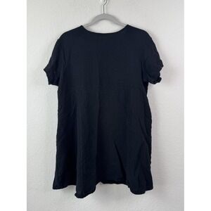 Bryn Walker Crinkle Gauze Tunic Top Women's XS Black Pockets USA Lagenlook
