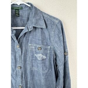 Vintage Ralph Lauren Chambray Denim Shirt Dress Utility Pockets Womens M