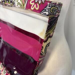 The Vera Bradley Clear Striped Beach Tote Bag is a stylish and functional shoulder bag designed for women. This medium-sized tote features a clear exterior with a striped pattern, perfect for a day at the beach. Made from vinyl, this bag is durable and easy to clean, making it ideal for carrying your essentials while enjoying some fun in the sun. The Vera Bradley brand ensures quality and a fashionable touch to your summer ensemble.