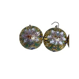 Lillian Vernon Cloisonné Ornaments Set of 3 Ball Gold Enamel Floral Vintage 1.5"
