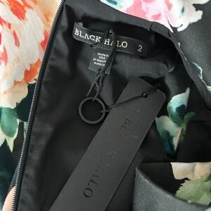 Black Halo Zana Sheath Mini Dress in Black Dark Romance Floral. Brand new with tags. Some darker dye in some light floral spots. Please review all photos prior to purchase. Size 2.
