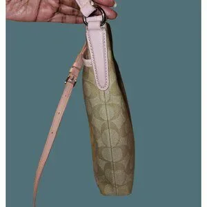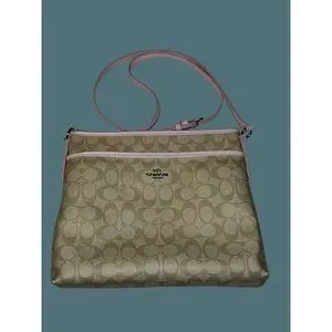 Coach F34938 Coated Canvas Signature File Khaki/Pink Crossbody Bag