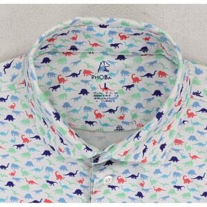 Rhoback The Jurassic Polo Shirt Large Multicolor Dinosaur AOP Performance Golf