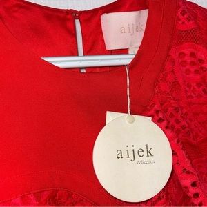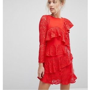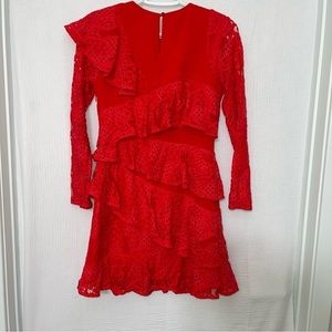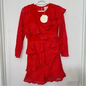 Aijek Mae Ruffled Lace Mini Dress in Rouge NWT