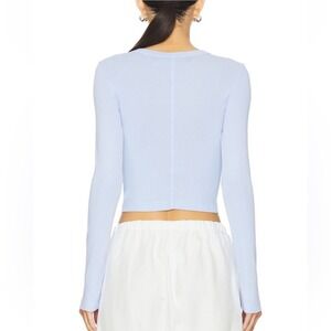 ENZA COSTA Supima Baby Rib Long Sleeve Cropped Top Womens Small Blue Crew Tee