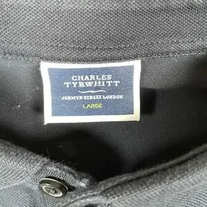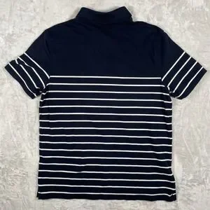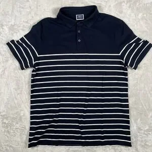 Charles Tyrwhitt Polo Shirt Mens Large Striped Casual Short Sleeve Navy