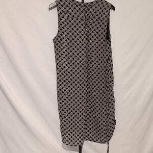 Stylish midi dress with a geometric pattern. Sleeveless design. Perfect for versatile wear.