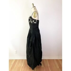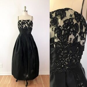 60s Formal Lace Dress Vintage Long Black Maxi Dress Structured Full Skirt Prom