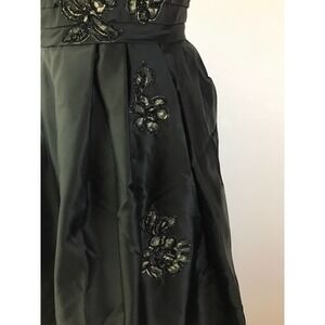 This vintage 1960s Mike Benet Formals dress is the perfect prom dress for the vintage inspired gal. Lace overlay with shelf bust, and pleated structured satin waistband. The floral detail falls along the side and down to the hem of the skirt in an appliqué of the same lace at the bust. Truly stunning. The skirt is stiff and structured, completely interfaced for a poofy fit. Zipper works fine, but dress was too small for my form.